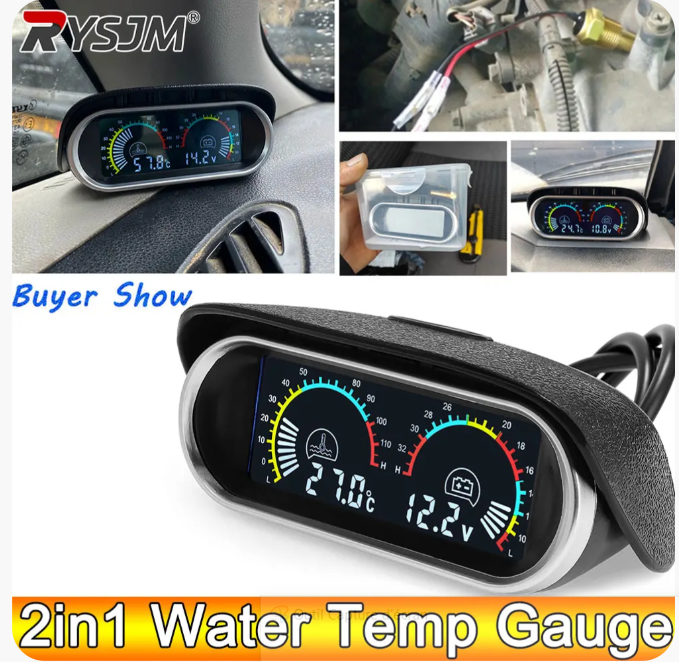 جهاز قياس 2 في 1 (حرارة ماء المحرك + فولتية البطارية)
